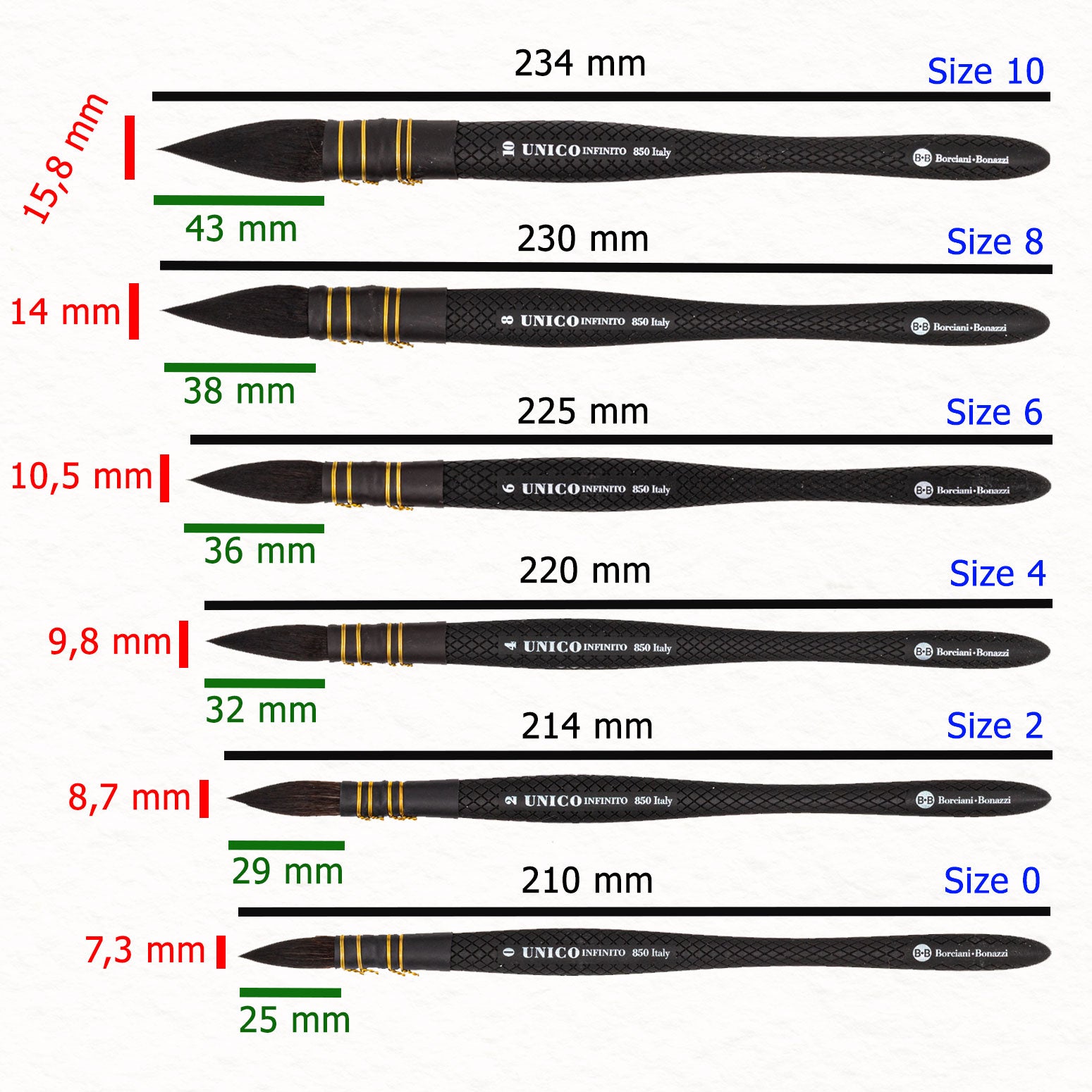 Le pinceau aquarelle Unico Infinito de Borciani Bonazzi est un pinceau à plume à pointe ronde en fibre synthétique Hidro® à haute absorption et manche ergonomique équilibré pour peindre dans un confort total, avec un col de reliure en forme de bruyère pour une stabilité maximale, ainsi qu'une double reliure en fil de laiton.